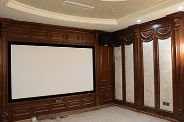 從前期的施工就進行了專業的聲學設計:聲場測試、聲學處理、設備定位的精確測算、吸音與擴散的專業布局,觀影視角的分析規劃,多方面的聲學細節考慮,都是為了做出完美專業的視聽效果。搭配control4智能中控系統,智能燈光控制系統,擺脫繁雜的遙控器、操作復雜、不會操作的帶來的使用頻率低,器材的浪費。