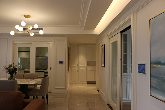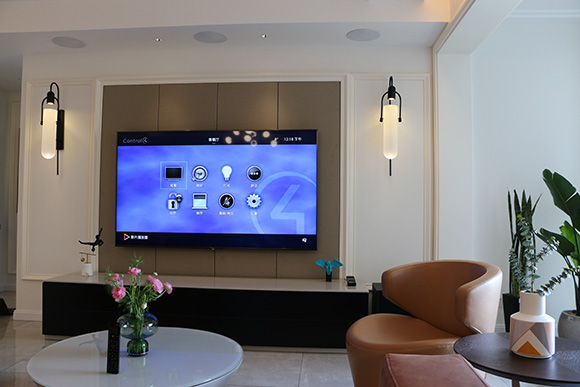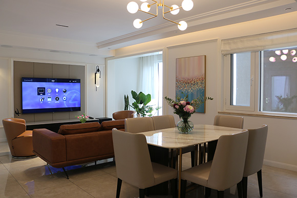 項目以全宅智能化的方式來設計這個展廳,采用美國Control4總線控制系統,?EA-5作為控制主機,配合Control4總線玻璃場景面板,來搭建整個智能家居控制系統。入戶、客廳、餐廳、書房、主臥室、次臥室、兒童房、廚房八個區域的智能控制。