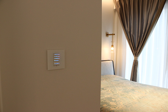 ? ? ?在入戶門口,設置了一個總線場景面板,設置了回家模式,會客模式,離家模式。
