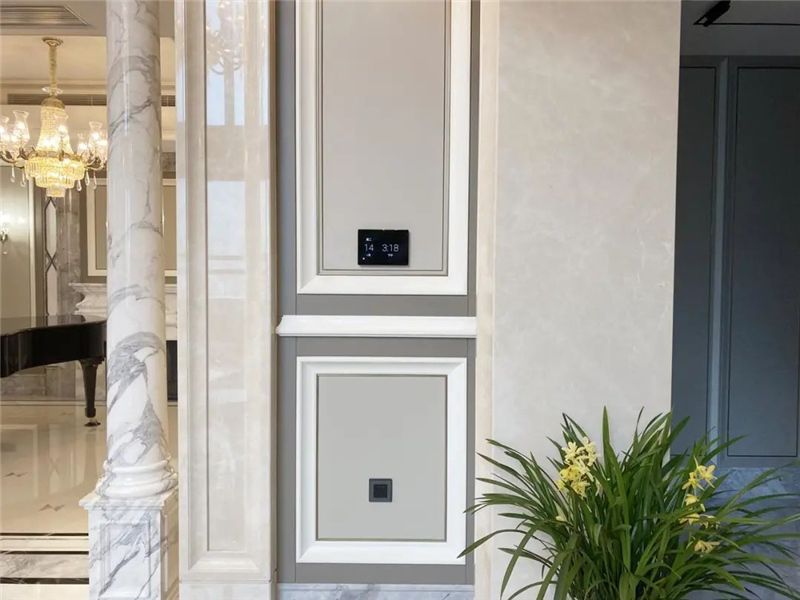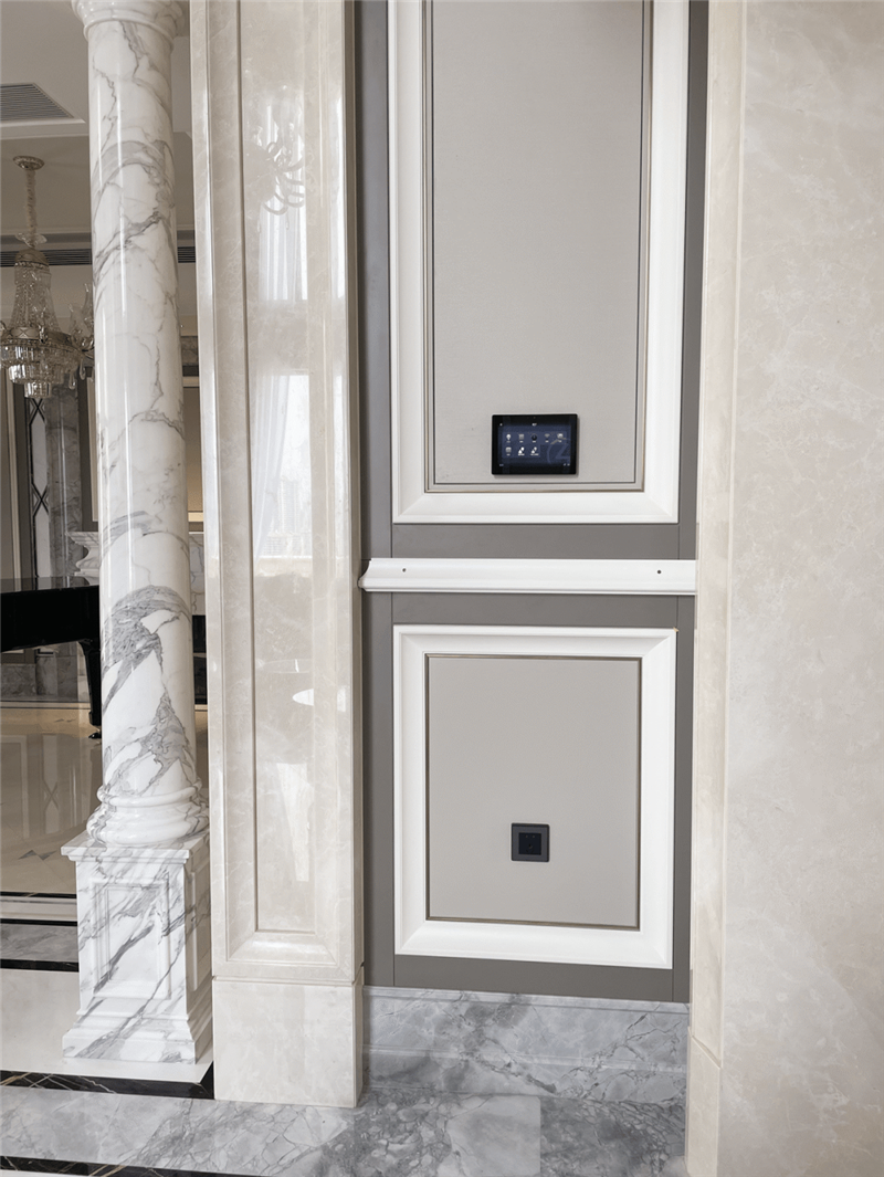EA-5作為整個項目控制主機,18只總線模塊與總線場景面板搭配Control4嵌墻8寸專屬屏來搭建整個智能控制系統。房間所有的燈光、窗簾、背景音樂、安防報警都通過Control4中控系統接入智能面板進行控制,業主不僅可以直觀地通過墻面面板對所有的燈光進行現場控制和亮度調節,還可以通過墻面開關設置的場景按鍵進行一鍵式場景控制,也可以通Control4觸摸屏、Neeo 遙控器、語音控制或自己的手機APP進行直觀的控制。
