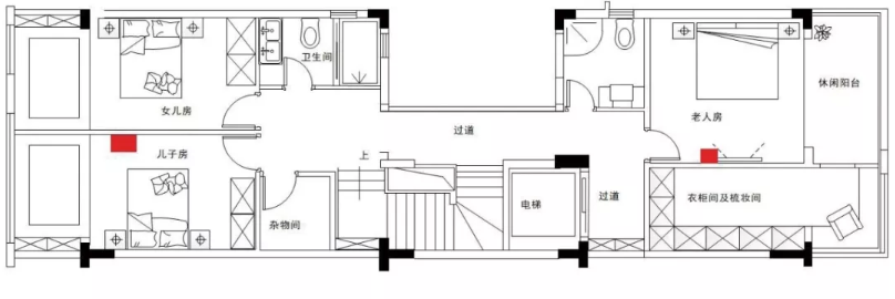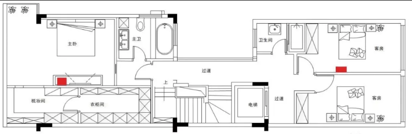 二樓和三樓的房間主要是臥室,臥室適合部署墻面AP,一是超薄小巧的外觀和其他開關融合在一起,更加美觀;二是通過調節發射功率,實現更低輻射更加健康。