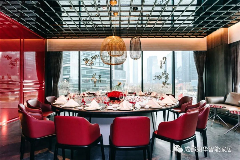 還可以通過終端APP輕松實現對室內燈光的開關控制和部分區域的燈光亮度調節,用“明與暗,光與影”將餐廳魅力更好地展現出來。